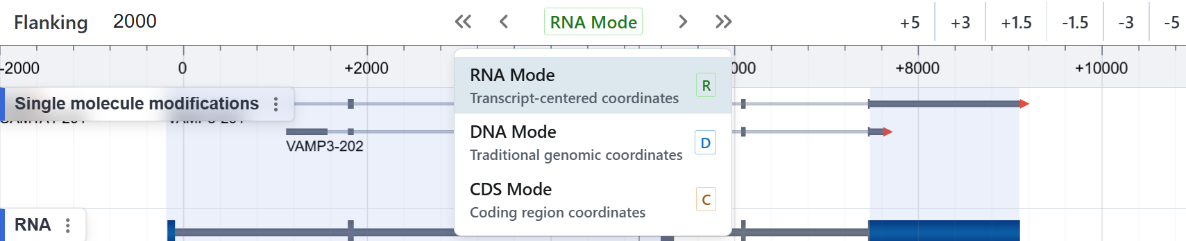 Similarly, when examining regulatory elements around a specific transcript or gene—such as promoters or CTCF binding sites—you rarely need to view multi-megabase genomic spans. Instead, you care about the relative distance to the target transcript, whether you’re analyzing binding regions, splice junctions, or modification sites.
