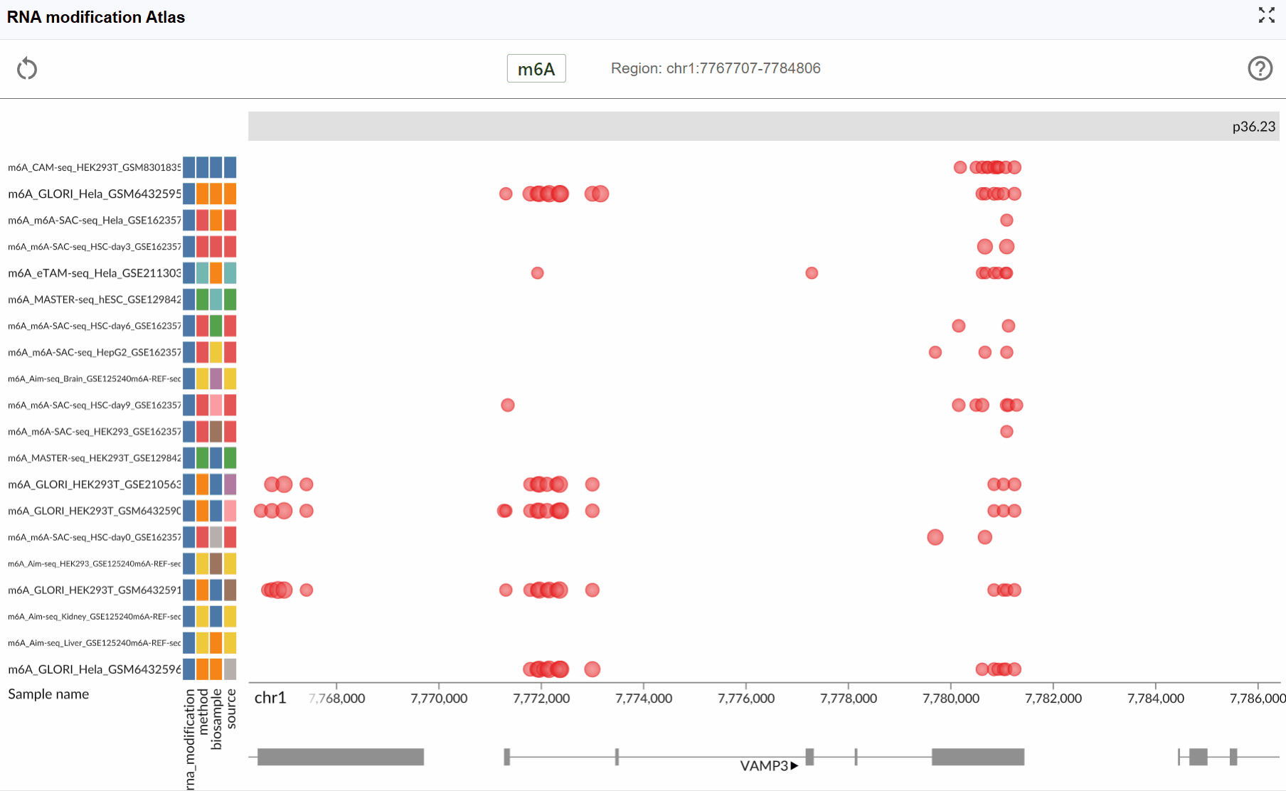 - Sequencing Method: The detection technology used (e.g., MeRIP-seq, miCLIP, m6A-seq, DART-seq, etc.)