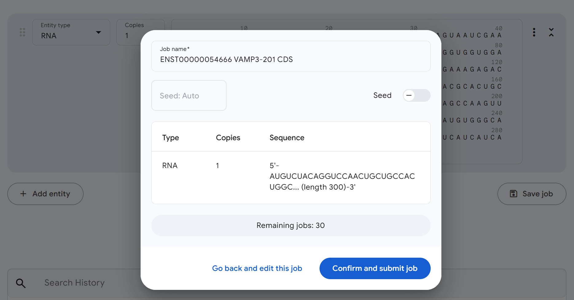 Review your job settings and sequence information one final time. Everything looks good? Click Confirm and submit job to start the structure prediction.