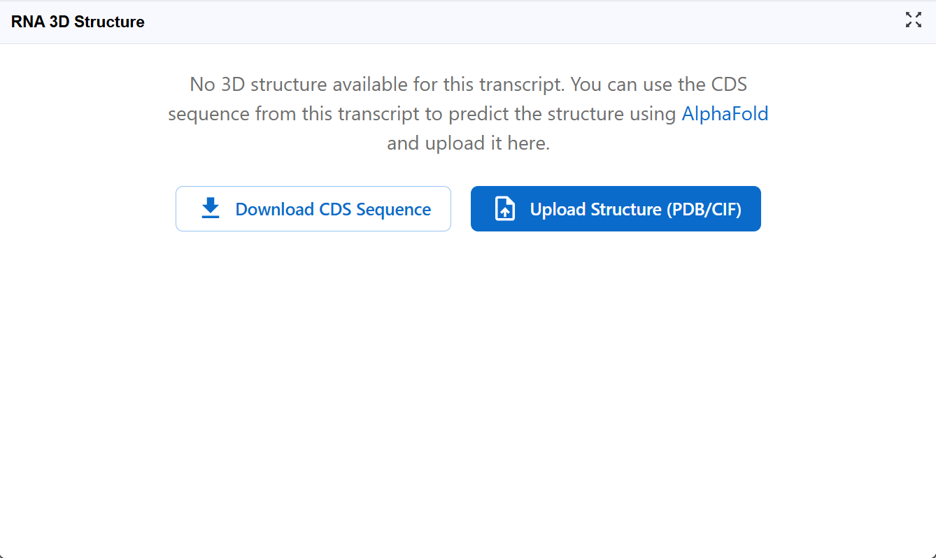 If your transcript of interest displays the message shown below, it means we currently don't have a 3D structure file available for this RNA in our database.