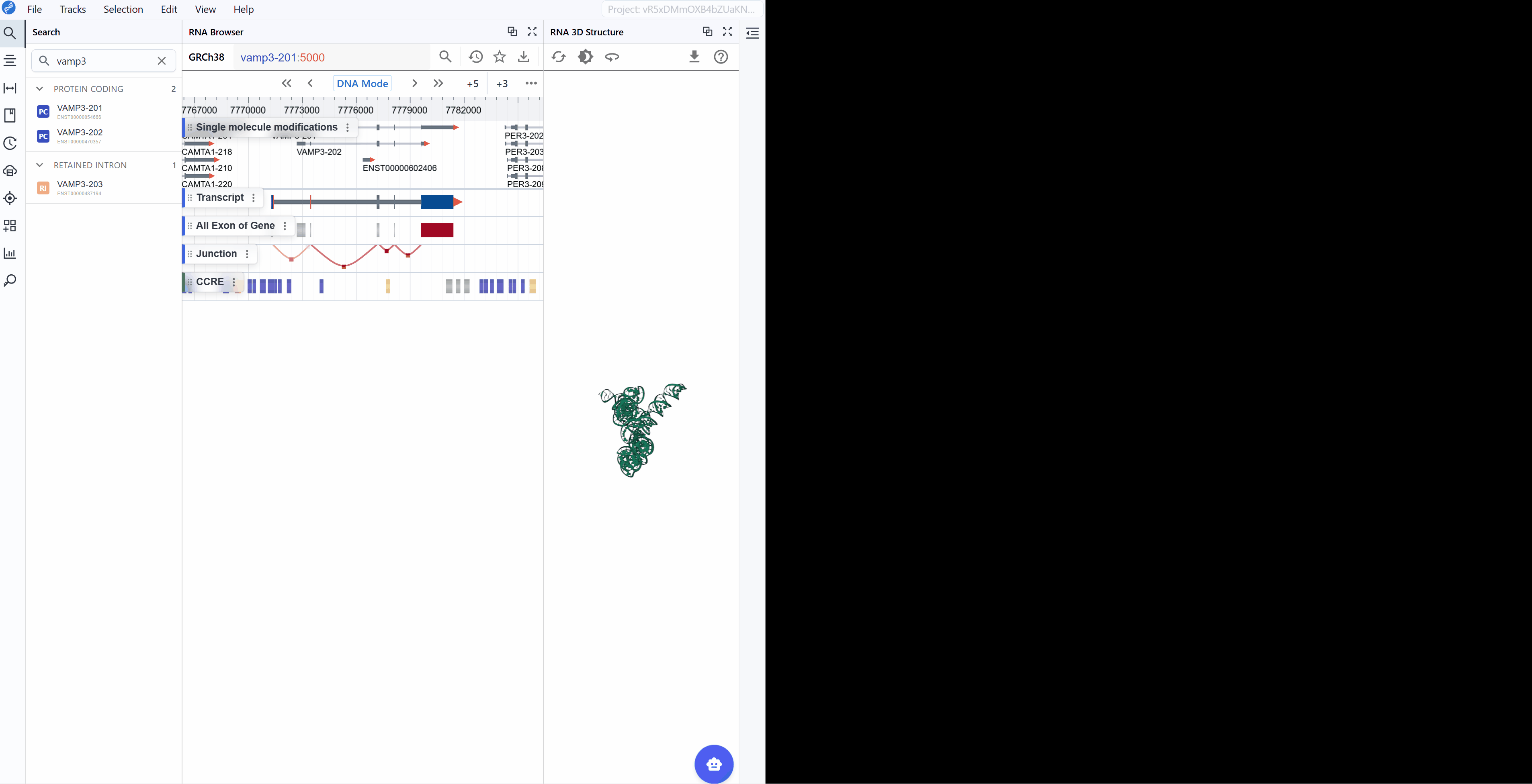Synchronized transcript navigation: When you search for a transcript in one window, all open RNA 3D Structure windows automatically synchronize to display the same transcript, ensuring consistent analysis across views.
