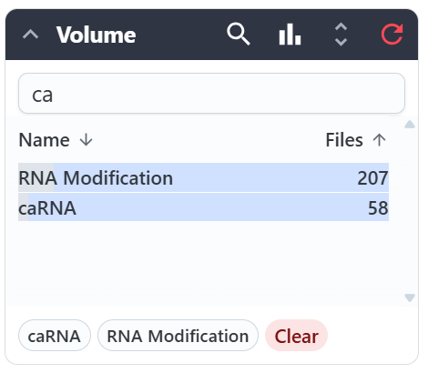 Collapse All/Expand All: collapses or expands all sectionsReset Filters: clears all section selections; the top-right corner displays the number of selected terms